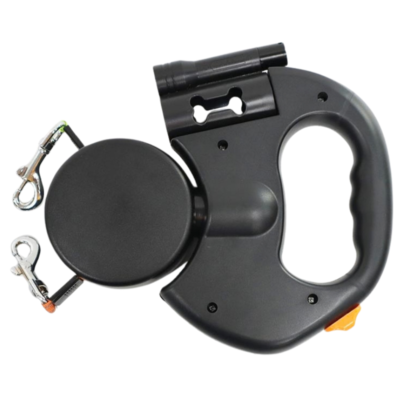 Built with a sturdy ABS and nylon construction, this leash for two dogs includes reflective webbing, a matte anti-slip handle, and a secure locking system for adjustable lead length. Whether you're out during the day or heading on a nighttime stroll, the built-in LED light enhances visibility for added safety. A built-in waste bag holder also keeps essentials within reach for stress-free outings.